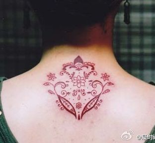 女孩子背部一款花卉藤蔓纹身图案