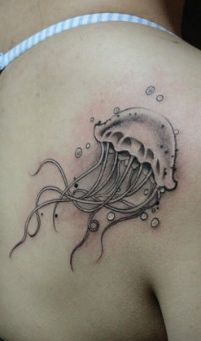 女孩子肩部流行的水母纹身图案
