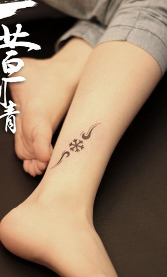 女生腿部好看的图腾雪花纹身图案