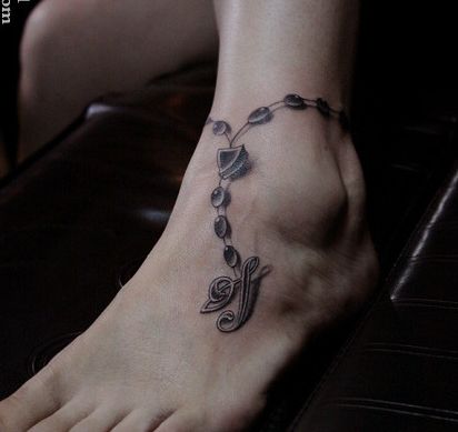 女生脚部时尚的脚链纹身图案