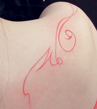 女孩子肩背另类唯美的图腾藤蔓纹身图案