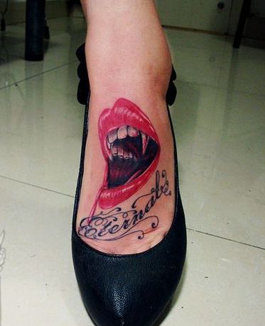 女生脚背一款唇印纹身图案