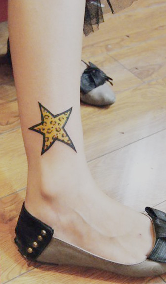 女孩子腿部好看的彩色五角星豹纹纹身图案