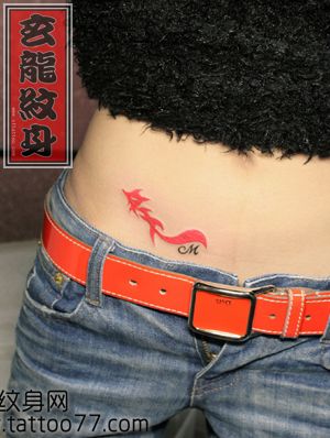 女生腹部一款图腾狐狸纹身图案