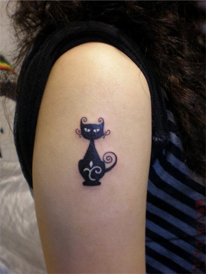 为女孩子提供一款手臂图腾猫咪纹身图案