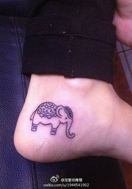 女生脚部可爱的小象纹身图案