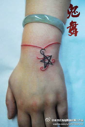 女生手腕处简单好看的手链纹身图案