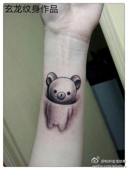 女生手臂可爱的熊娃娃纹身图案