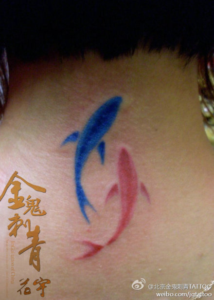 女生颈部小巧唯美流行的小鱼纹身图案