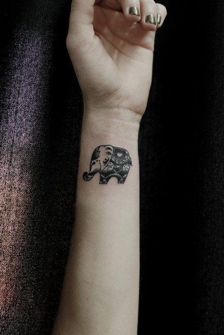 女生手腕流行可爱的小象纹身图案