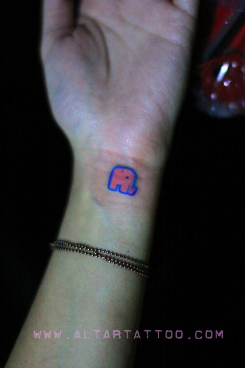 女生手腕处可爱的彩色小象纹身图案