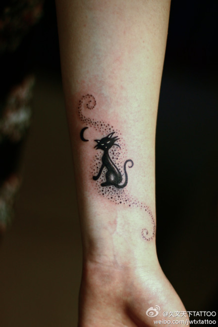 女生手臂小巧时尚的图腾猫咪纹身图案