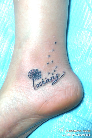 女生脚踝处小巧时尚的蒲公英纹身图案
