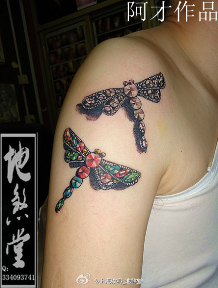手臂漂亮精美的钻石蜻蜓纹身图案