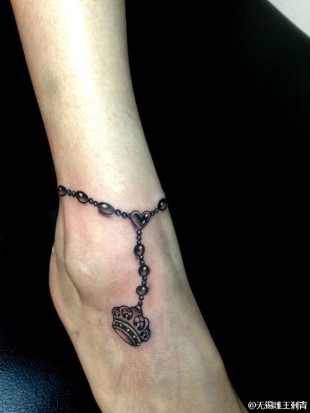 女生脚腕小巧精美的皇冠脚链纹身图案