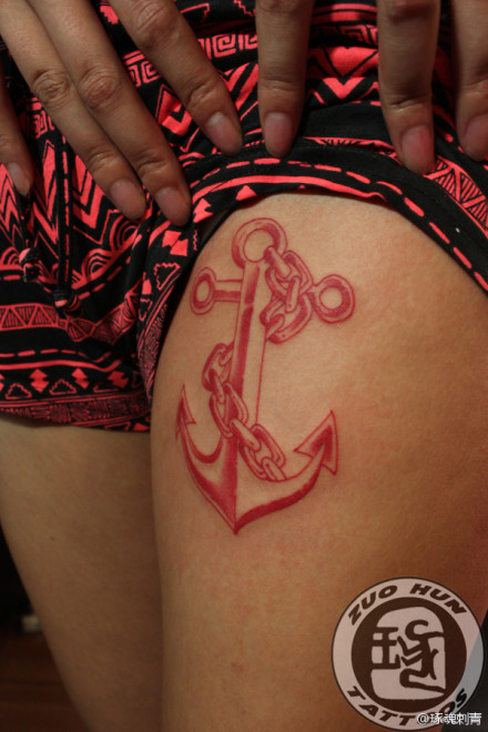 美女腿部潮流经典的船锚纹身图案
