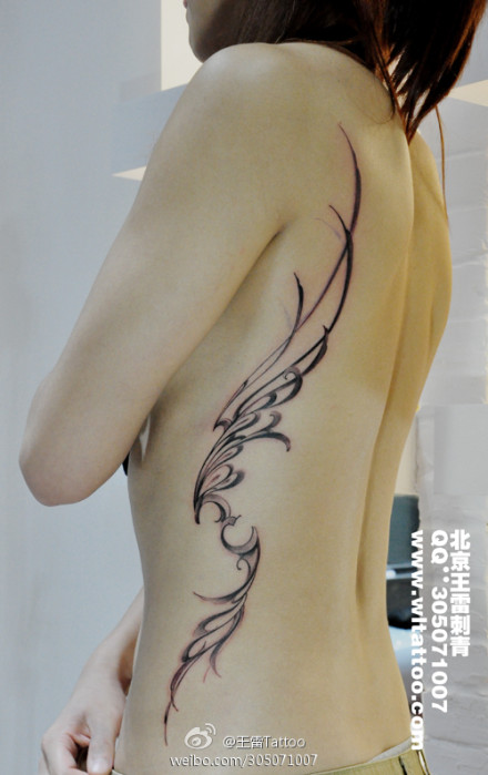 美女侧腰潮流精美的图腾藤蔓纹身图案