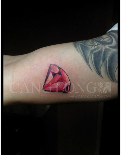 手臂内侧漂亮流行的彩色钻石纹身图案