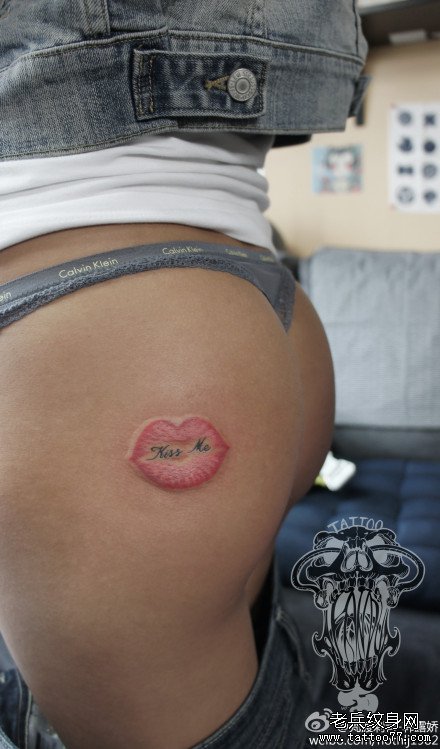 女生臀部一款潮流经典的唇印纹身图案