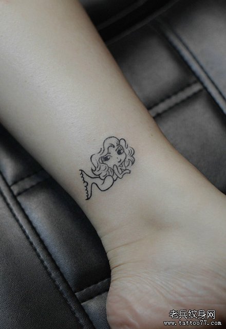 女生脚踝处精美小巧的美人鱼纹身图案