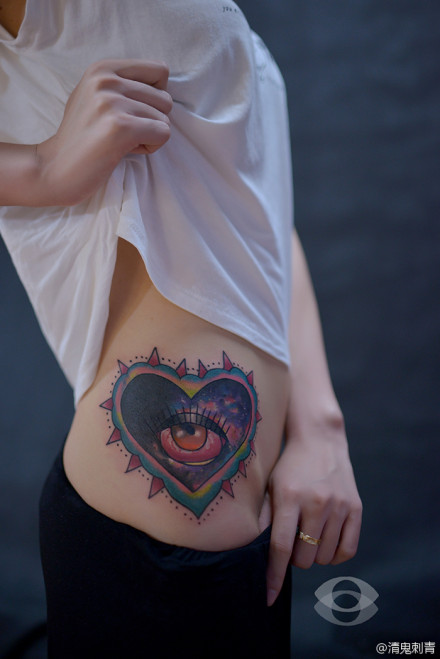 美女腰部潮流经典的眼睛与爱心纹身图案