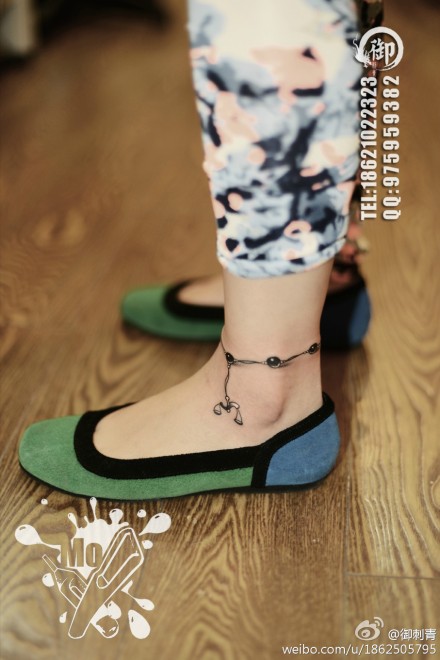 女生脚腕处精美时尚的天秤座脚链纹身图案