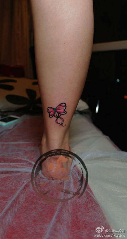 女生小腿潮流精美的小蝴蝶结纹身图案