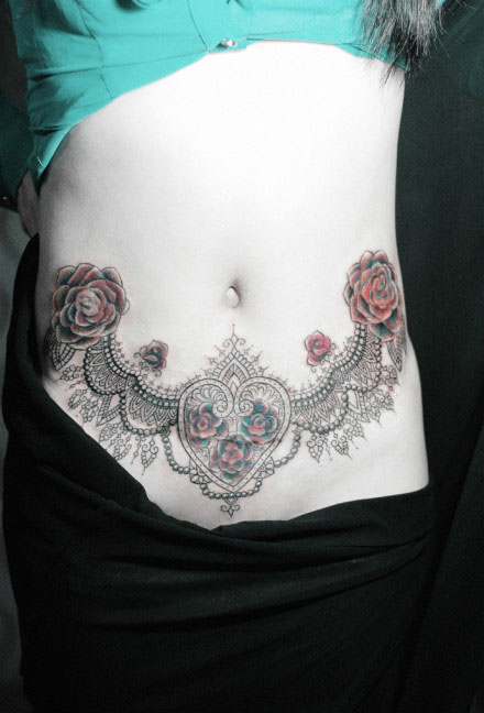 美女腹部时尚唯美的蕾丝纹身图案