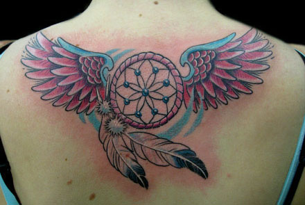 女生后背唯美时尚的捕梦网纹身图案
