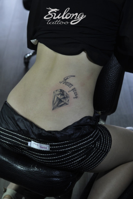 女生腰部时尚潮流的黑灰钻石纹身图案