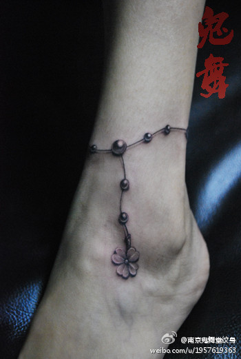 女生脚腕时尚小巧的四叶草脚链纹身图案