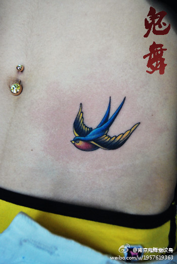 美女腹部时尚小巧的小燕子纹身图案