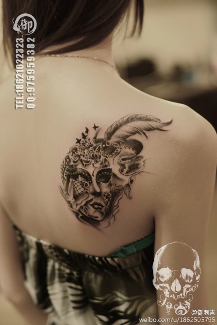 美女肩背潮流漂亮的威尼斯面具纹身图案