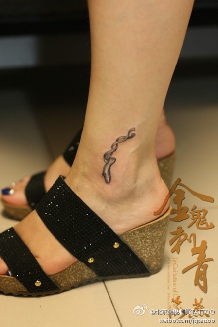 女生脚踝处小巧时尚的芭蕾鞋纹身图案