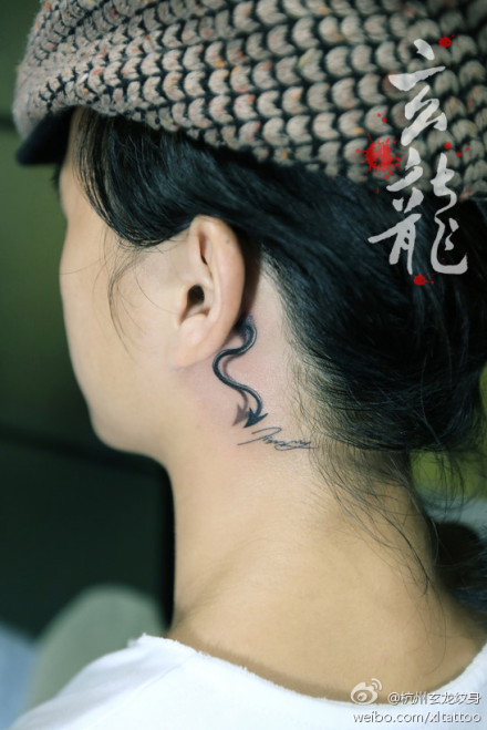 美女耳部另类潮流的恶魔尾巴纹身图案