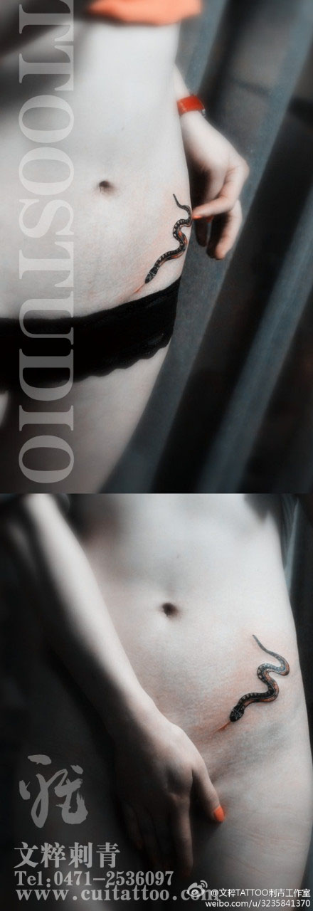 女生腹部一款小蛇纹身图案