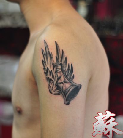 手臂欧美翅膀沙漏纹身图案