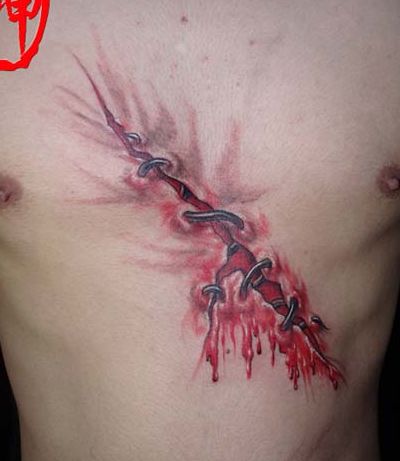 一款胸部撕皮纹身纹身图案