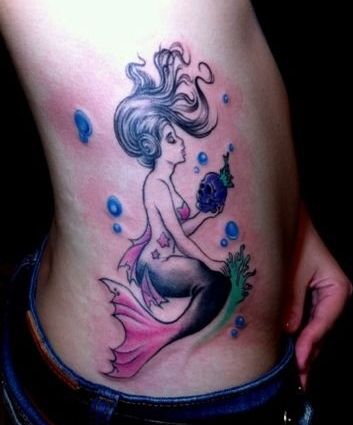 美女腰部一款美人鱼纹身图案