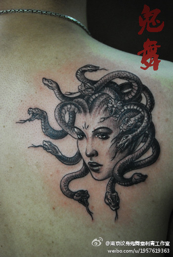 男人背部一款美杜莎纹身图案