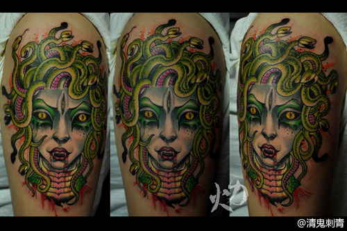 手臂超酷经典的美杜莎纹身图案