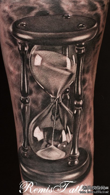 就是潮流的一款黑灰沙漏纹身图案