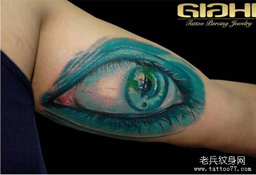 手臂一款精美潮流的彩色眼睛纹身图案