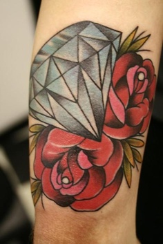 分享一款个性潮流的玫瑰花钻石纹身图案