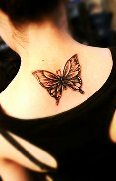 美女一款后背经唯美的蝴蝶纹身图案