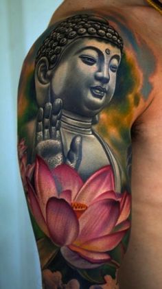 男人大臂一款霸气时尚的佛头莲花纹身图案