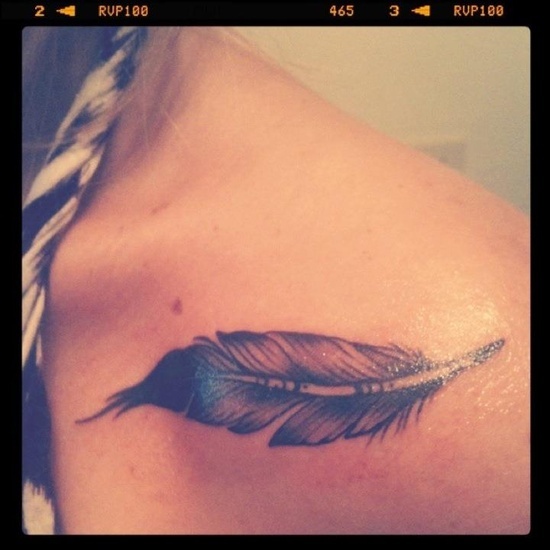 推荐一款时尚潮流的肩胛骨羽毛纹身图案