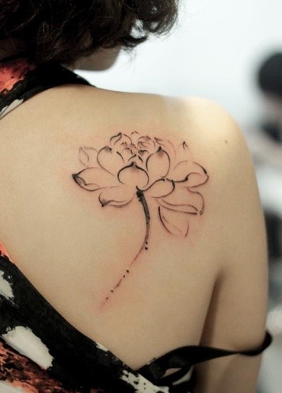 美女肩胛骨一款淡雅个性的水墨莲花纹身图案