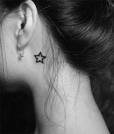 推荐一款时尚小清新个性的耳后五角星纹身图案