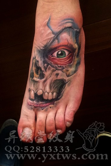 推荐一款霸气潮流的脚背骷髅纹身图案